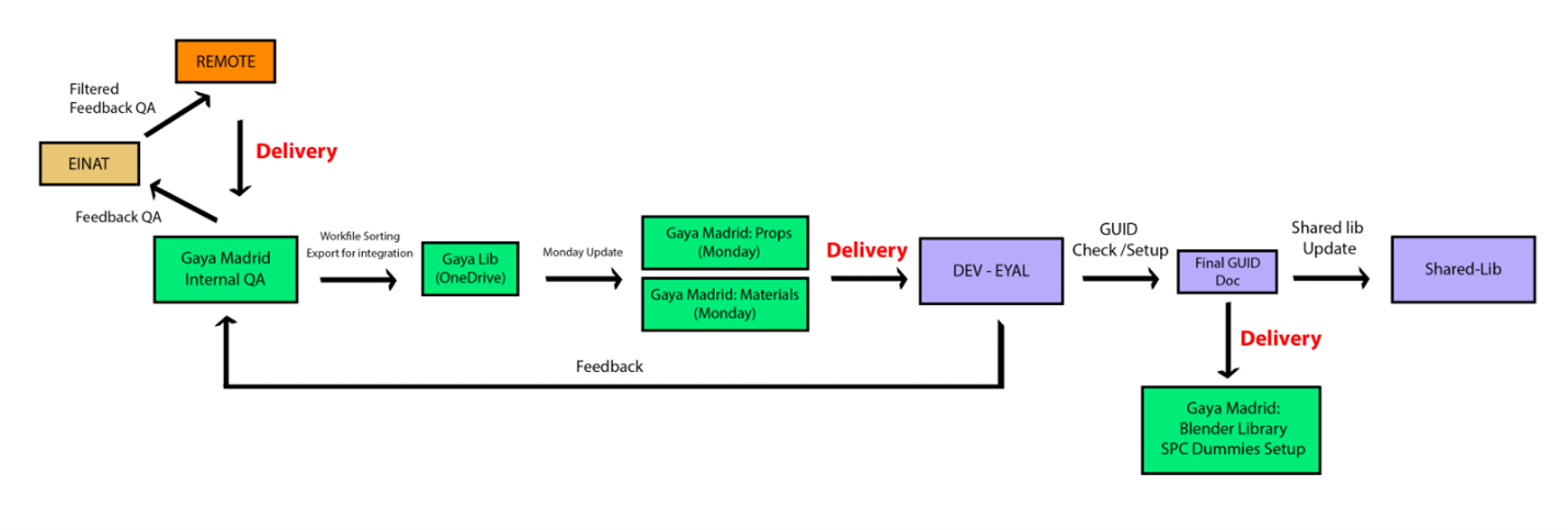 Gaya Lib (GREEN): The exported library where projects source materials. DEV retrieves updates from here.