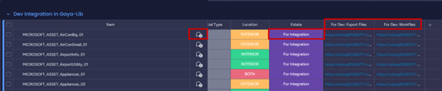 - The GUID Doc should be an accessible online Excel document, editable by the Dev team. This document matches GLTF names with their corresponding GUIDs. When Dev marks an item as Integrated, they will update the GUID Doc accordingly.
